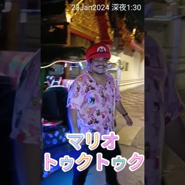 【マリオトゥクトゥク】見かけたら使ってあげて下さい。ど深夜なのにお客さんに言われてお寺に来てました。儲かったらもっとトゥクトゥクをマリオっぽくしてね★23Jan2024 #shorts #mario